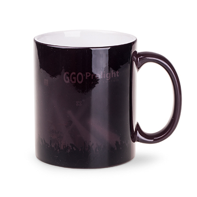 Kubek reklamowy o popularnym cylindrycznym kształcie. Model dostosowany do nanoszenia nadruków Magic Mug - projektów pojawiających się wyłącznie pod wpływem ciepła.
