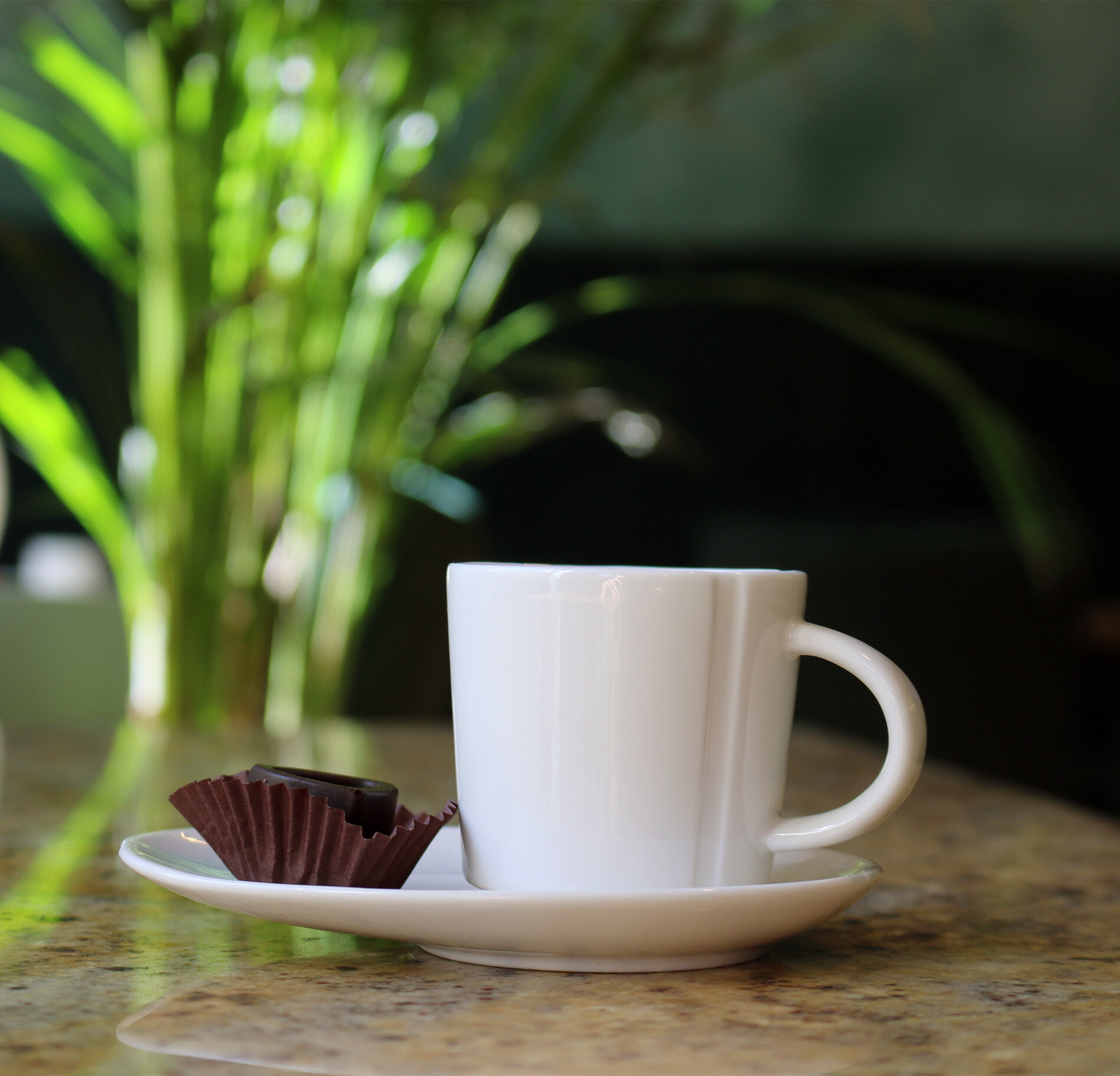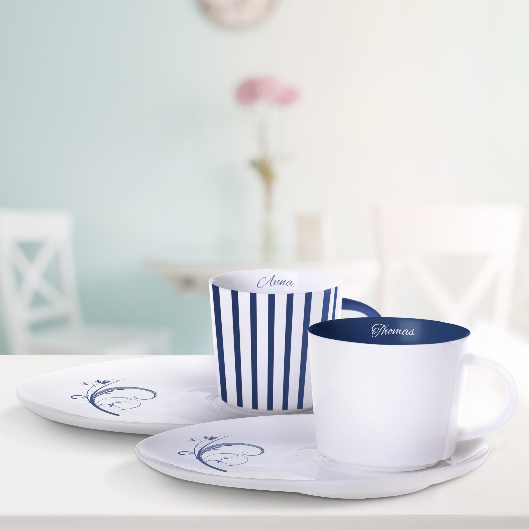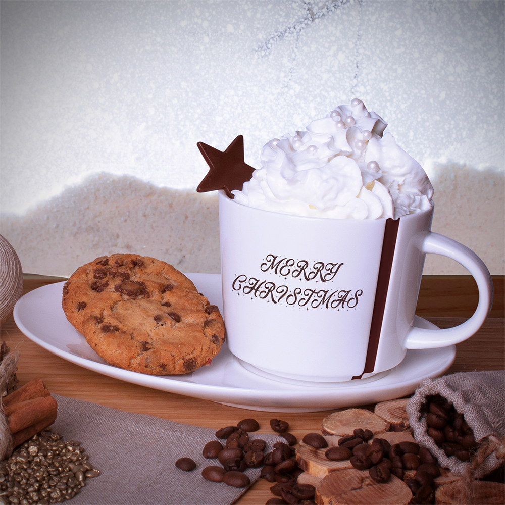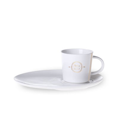 Porcelanowa filiżanka z charakterystycznymi przetłoczeniami z obu stron ucha. Filiżanka dostępna w trzech pojemnościach, ze spodkiem pozwalającym na serwowanie przekąski.