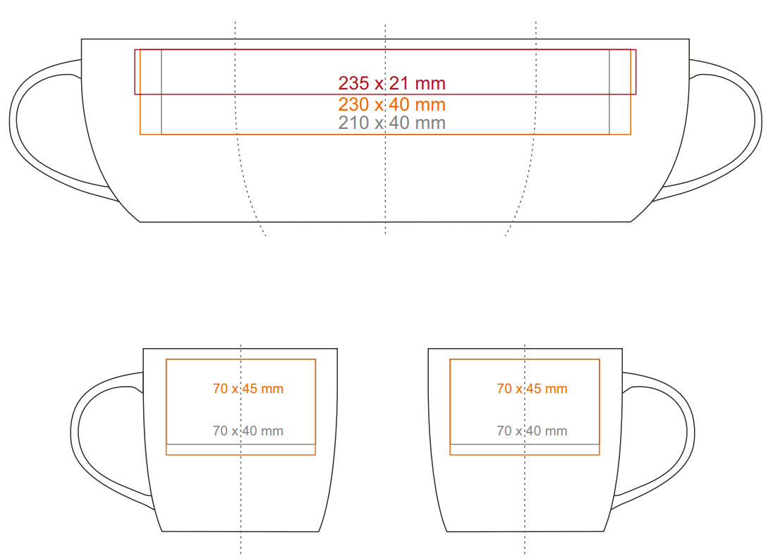 * W przypadku projektów wybiegających poza standardową powierzchnię nadruku prosimy o kontakt z działem handlowym.
