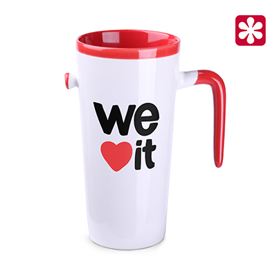 Oryginalny i przykuwający wzrok kubek w pięciu wersjach kolorystycznych wnętrza i uchwytu. Duża powierzchnia nadruku stwarza szerokie możliwości promowania brandu. Produkt jest końcówką serii, mogą na nim występować nakłucia, kropki oraz różnice w odcieniu szkliwa.