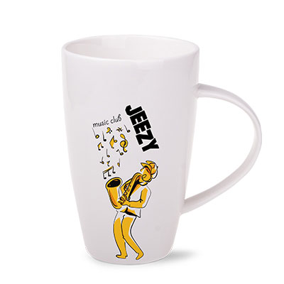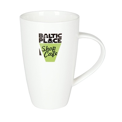 Wysoki i smukły porcelanowy kubek. Posiada stylowe ucho. Cechuje go duża pojemność i szerokie możliwości nadruku.