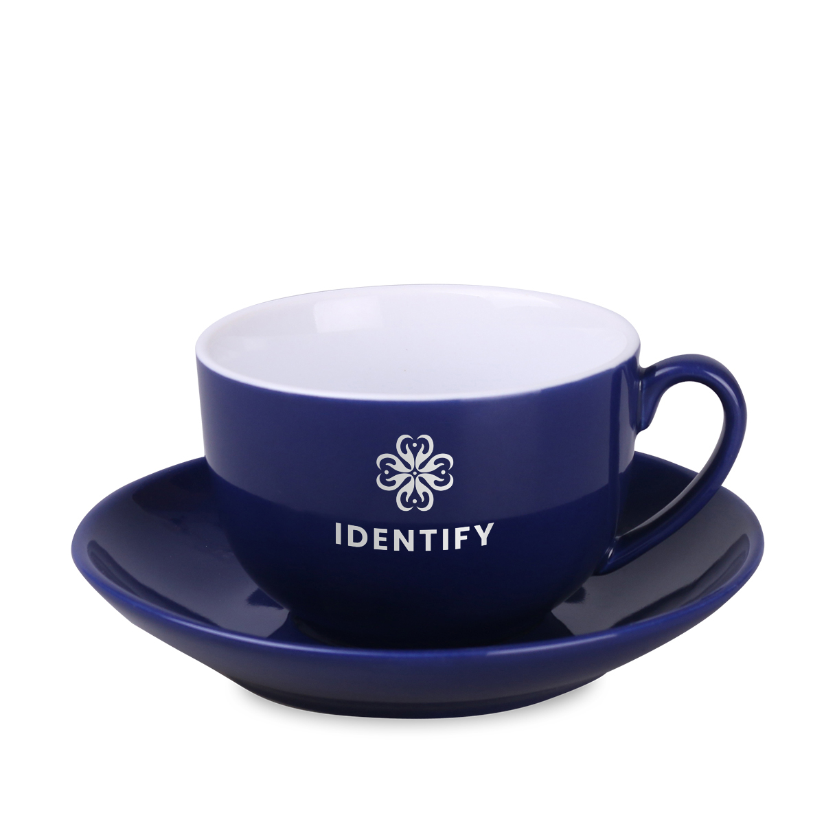 Porcelanowa filiżanka reklamowa z kolorowym szkliwem na zewnątrz i białym wnętrzem. Fason dostępny w wielu wersjach kolorystycznych.