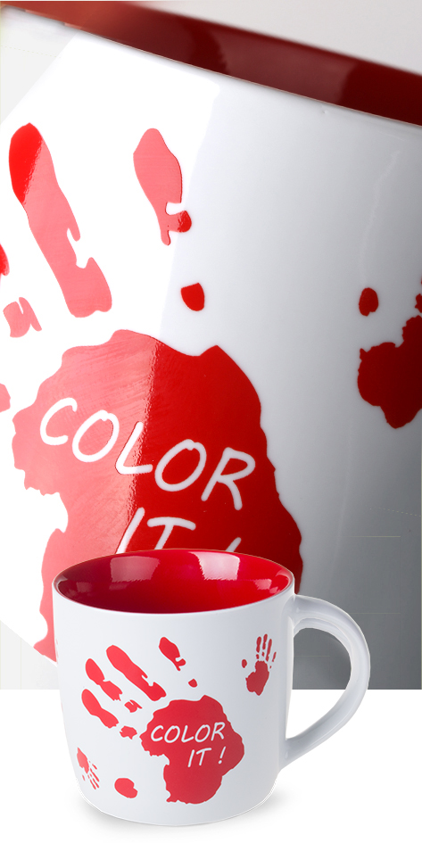 Natryskowe, naszkliwne barwienie wewnętrznej powierzchni porcelany i ceramiki reklamowej